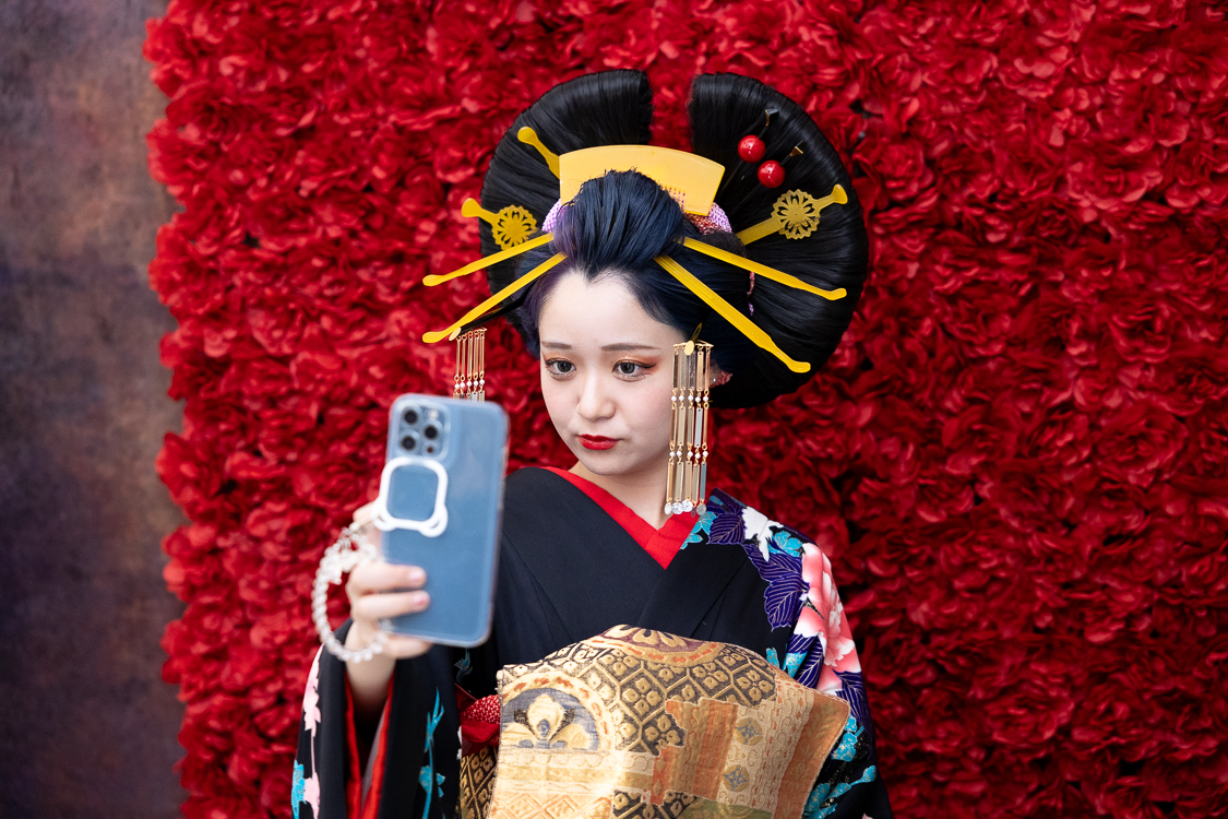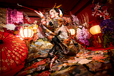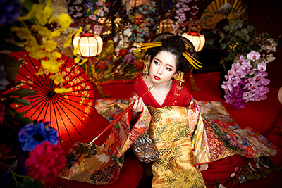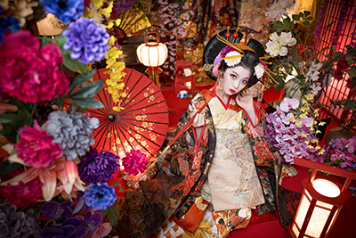 本格的なセットと小物をご用意しておりますので、格式高い花魁の世界に没入し、美しくセクシーで妖艶な花魁の体験の非日常をお楽しみください