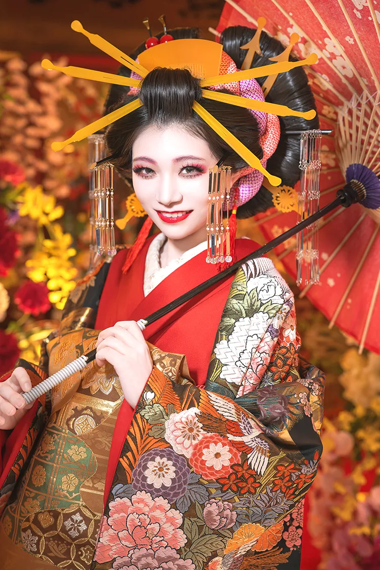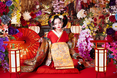 ※この撮影は花魁のファッション的文化や撮影ノウハウ、スタジオ八色の背景を取り入れた彩り豊かな着物撮影となります。花魁としての撮影ではありません。