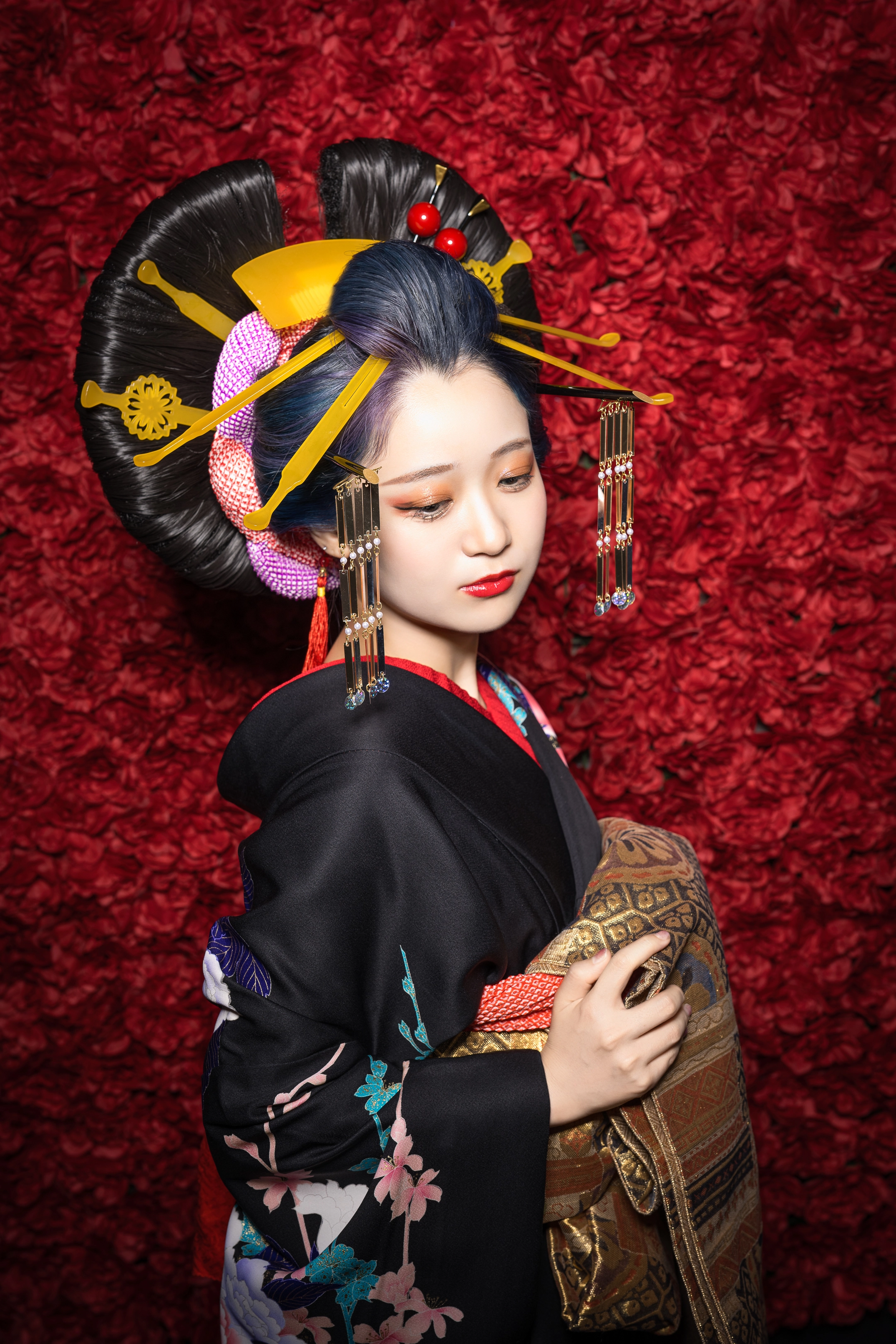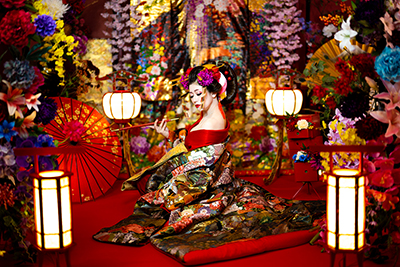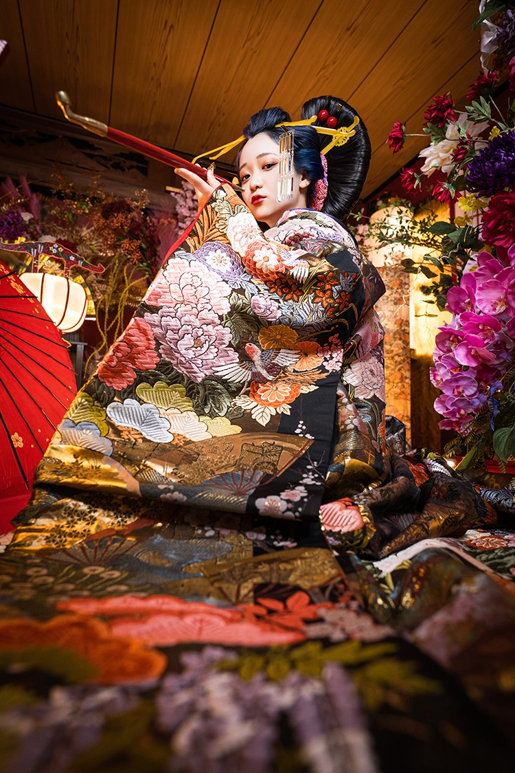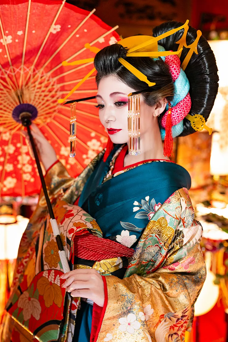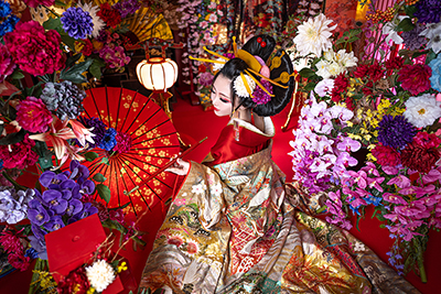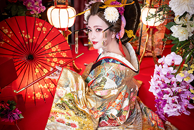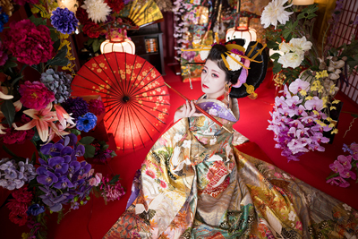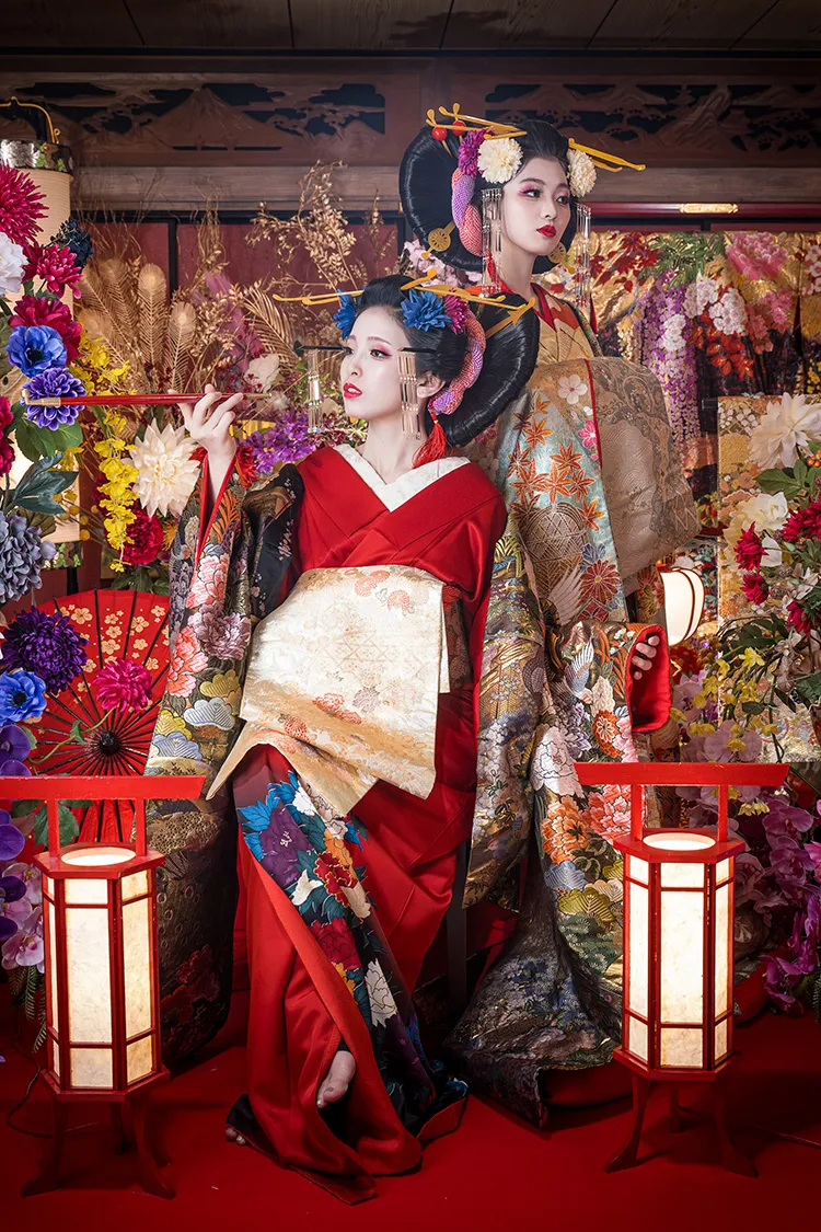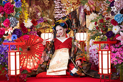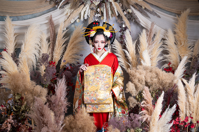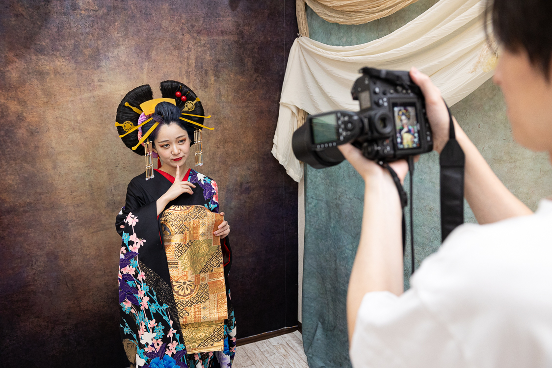※この撮影は花魁のファッション的文化や撮影ノウハウ、スタジオ八色の背景を取り入れた彩り豊かな着物撮影となります。花魁としての撮影ではありません。