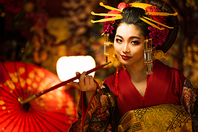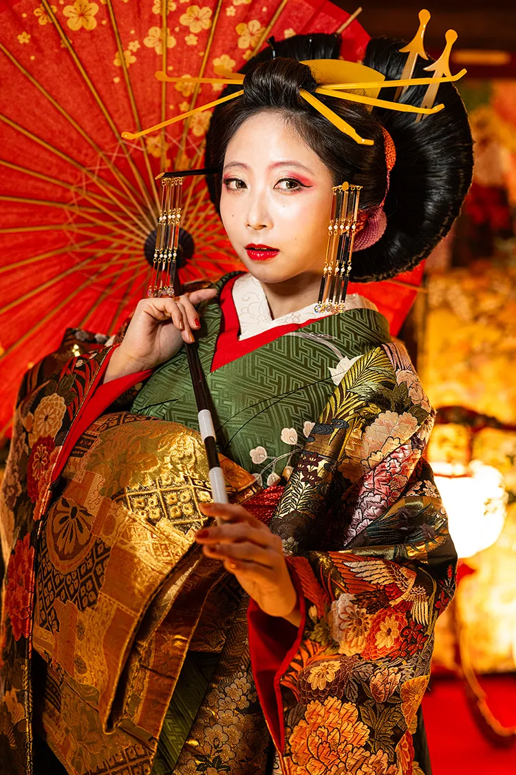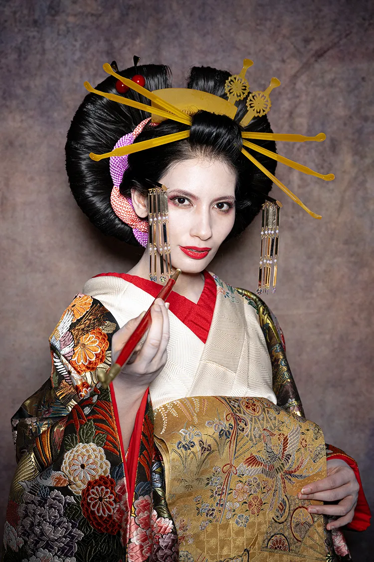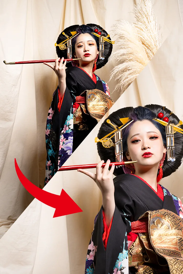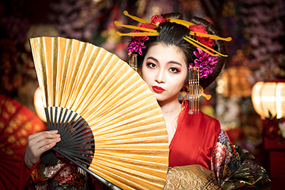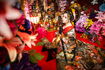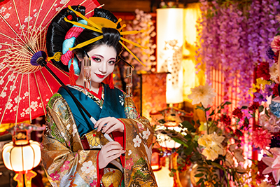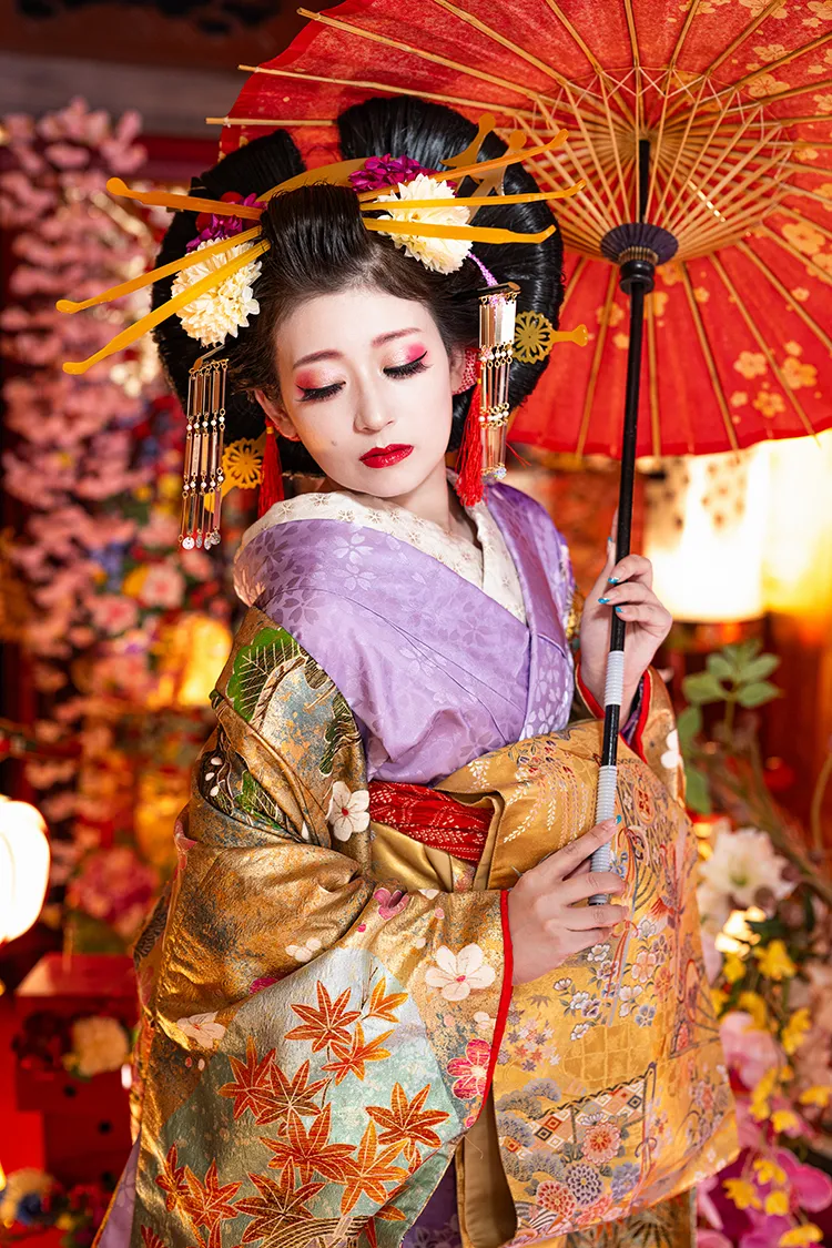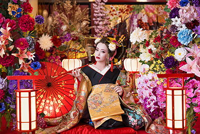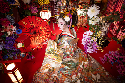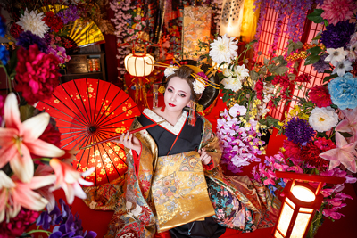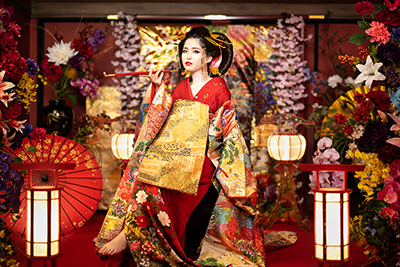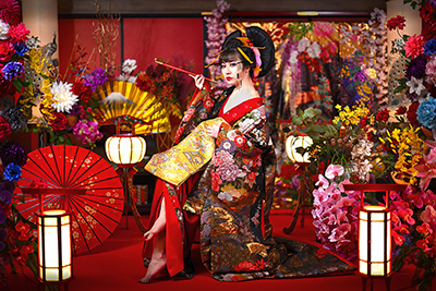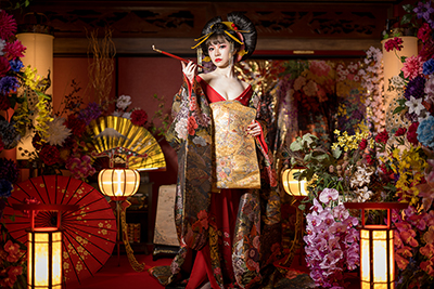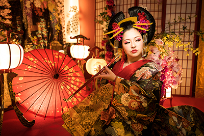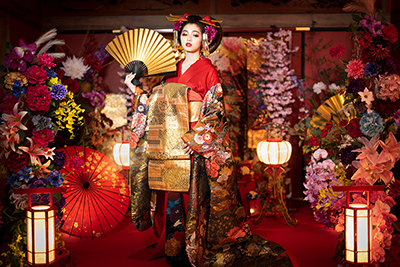 本格的なセットと小物をご用意しておりますので、格式高い花魁の世界に没入し、美しくセクシーで妖艶な花魁の体験の非日常をお楽しみください